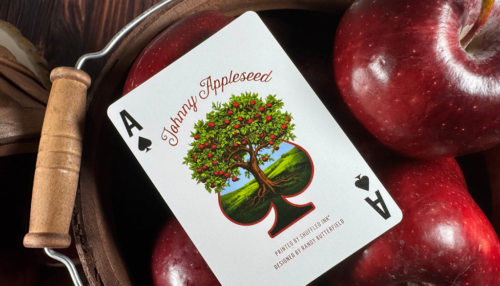 The Johnny Appleseed Deck is a classical and tasteful design that is also extremely playable for any card game. It is printed by Shuffled Ink Playing Cards in the U.S.